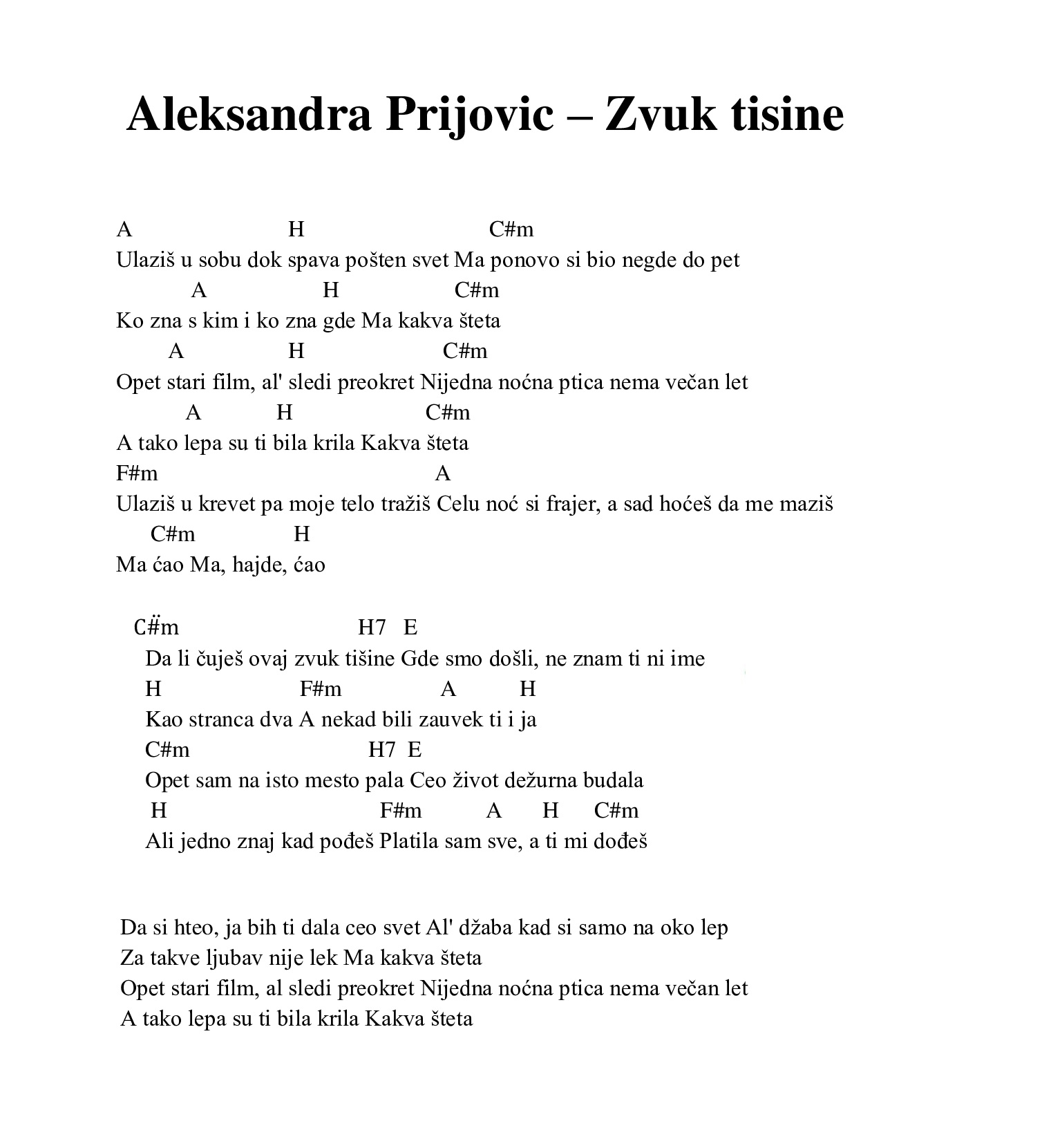 Aleksandra Prijovic - Zvuk tisine Akordi